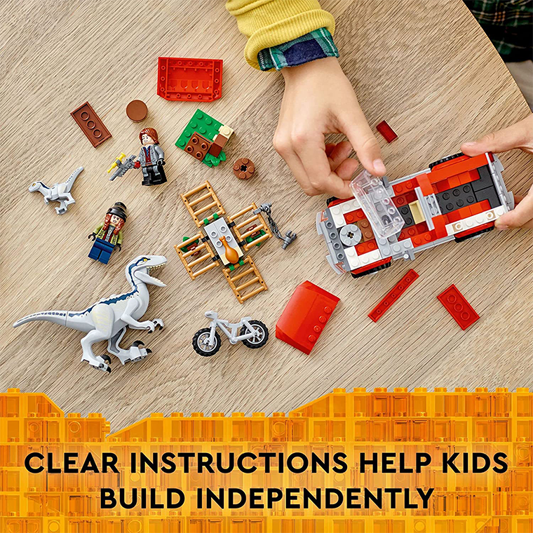 Dinosaur and truck playset – Let kids reenact Jurassic World Dominion movie action or create their own stories with this Blue & Beta Velociraptor Capture (76946) toy building set 2 LEGO minifigures and 2 dinosaurs – Maisie and Rainn Delacourt with a tranquilizer gun, plus a posable Blue dinosaur figure and Beta dinosaur figure to inspire role-play adventures